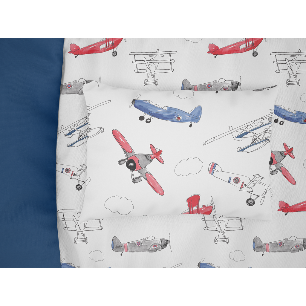 An airplane theme for boys of all ages, with painted planes soaring across cloudy skies.