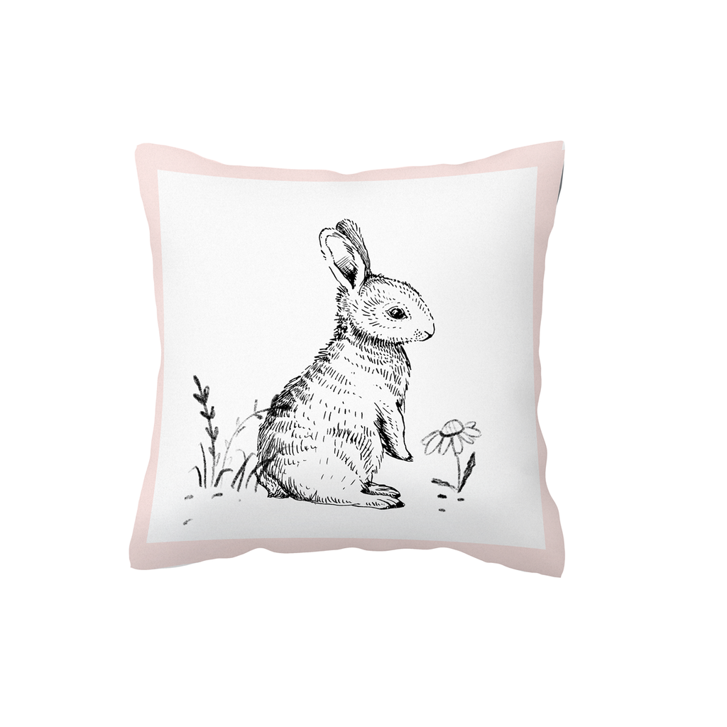 Adorable hand drawn bunny scatter with a soft pink border. The perfect compliment to Sketch Bunnies duvet set.