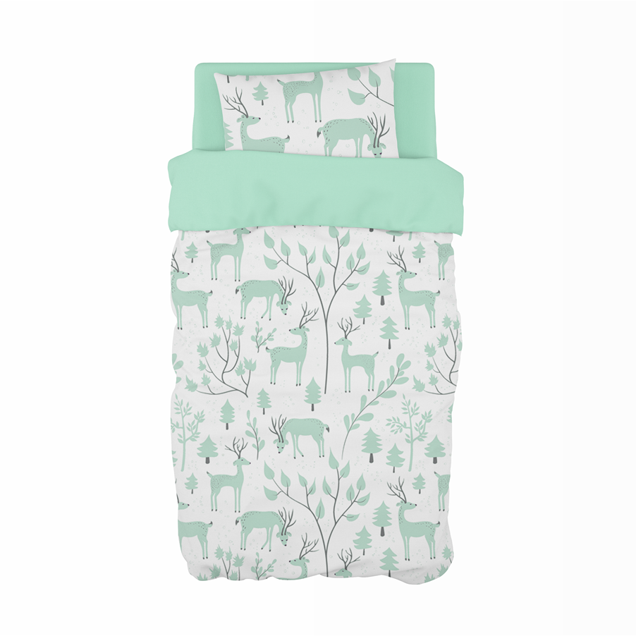 A lovely neutral woodland theme in fresh mint. Perfect for boys and girls alike.