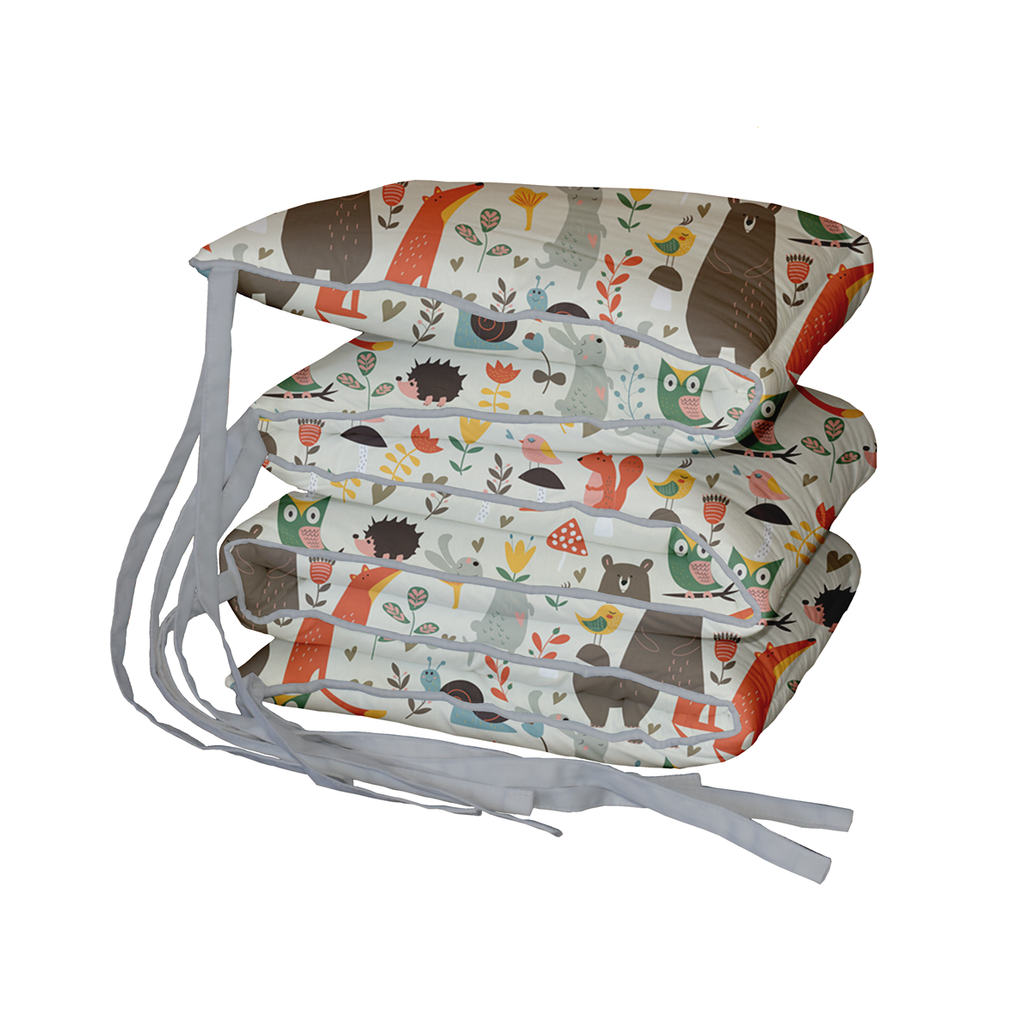 Our Cot Bumper fits standard and large cots and measures 198cm long x 28cm high.