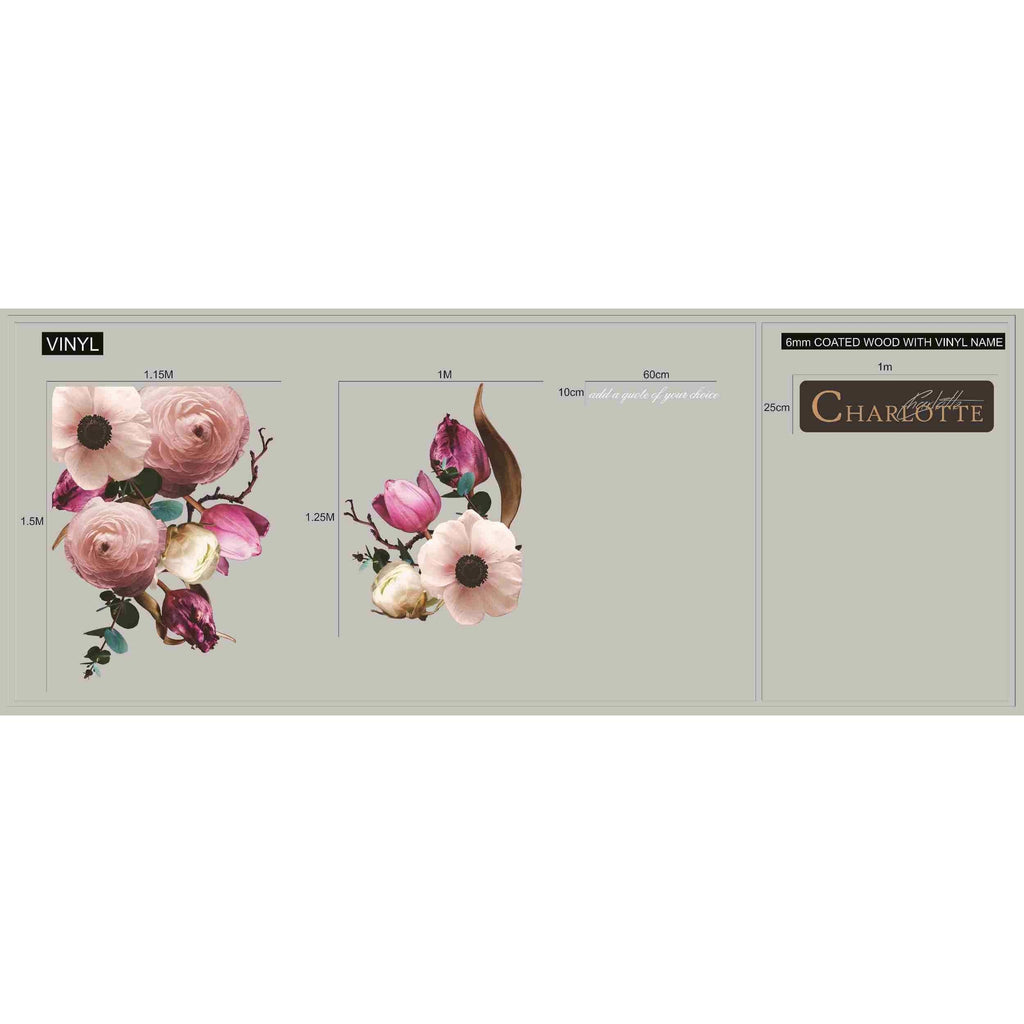 These bold & exotic flowers will look perfect on any little girls wall. An absolutely timeless collection that will take them from baby to teenager effortlessly. The Romantics Nights collection comes complete with your flowers printed on matte vinyl decals, a quote of your choice and your wooden name plaque with the name of your choice